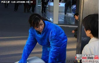 Foto-foto gadis maskot yang tersebar di situs-situs forum internet di China ini telah menjadi diskusi publik. Sang pengirim yang mengaku berprofesi sebagai fotografer, mengabadikan kegiatan gadis maskot ini secara diam-diam saat berlangsung Guangzhou Auto Show tahun lalu. Tidak disebutkan siapa nama gadis maskot ini. Penulis hanya mengatakan sang gadis maskot tidak terlalu manis dibandingkan para model yang berpose bersama mobil-mobil terbaru saat pameran tersebut. Gadis ini hanya tidak beruntung.